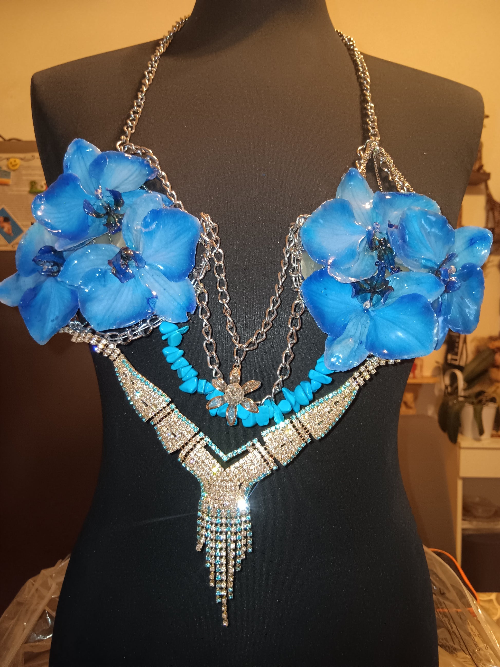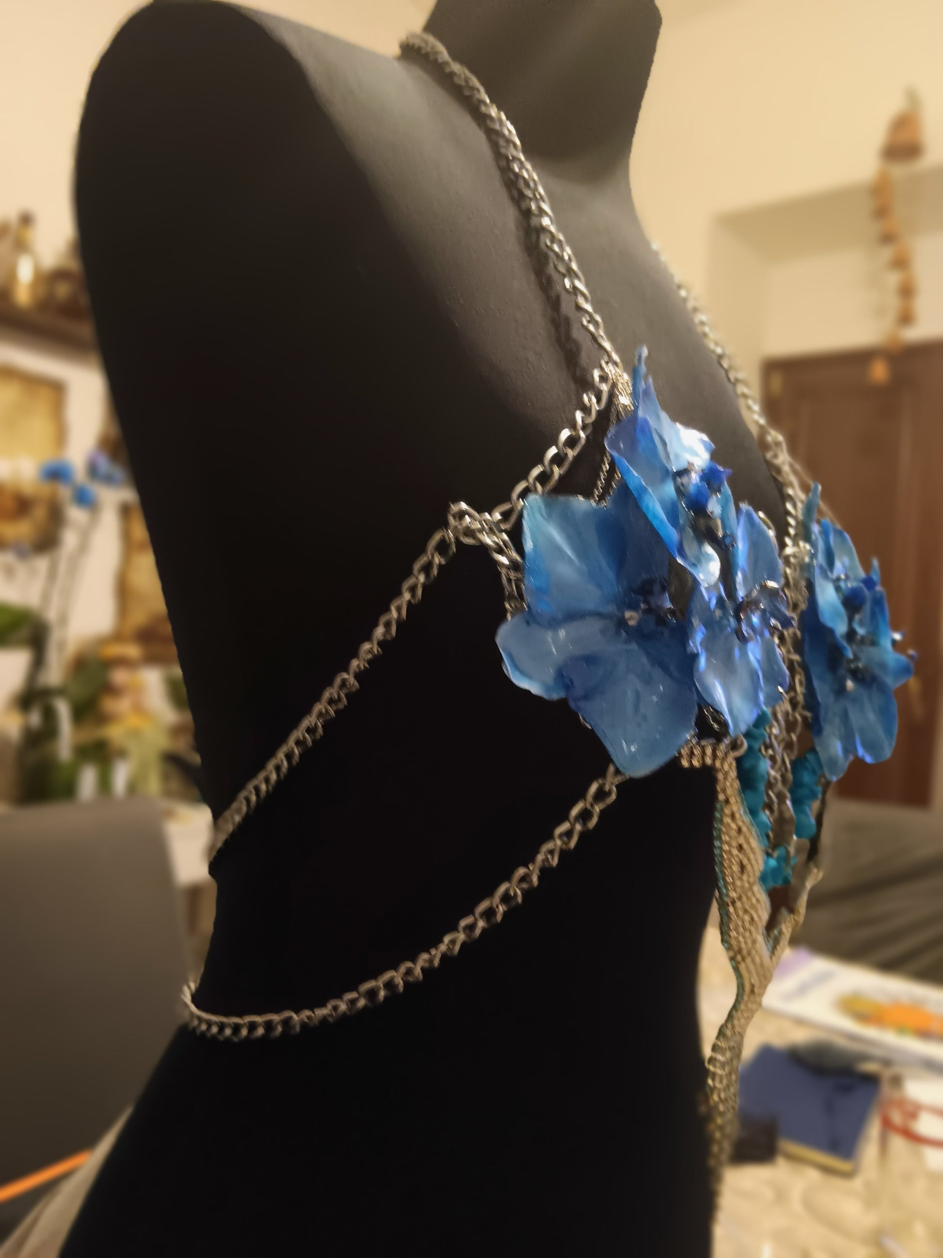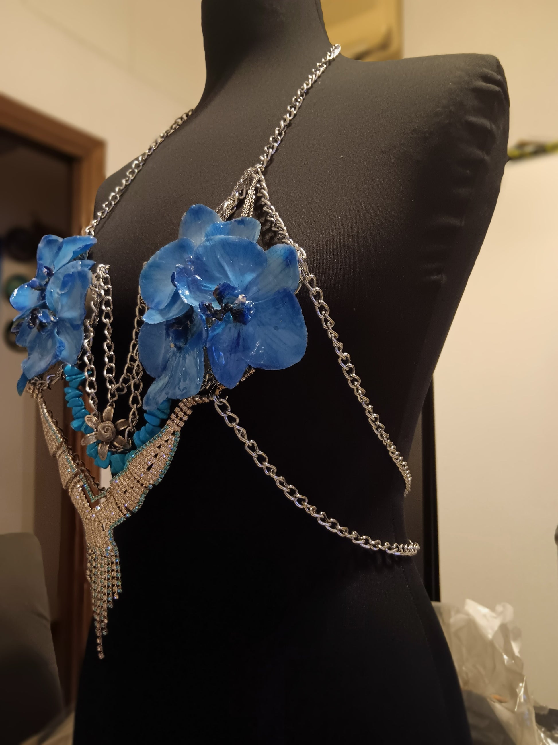 Bustier di fiori naturali lavorati con la resina